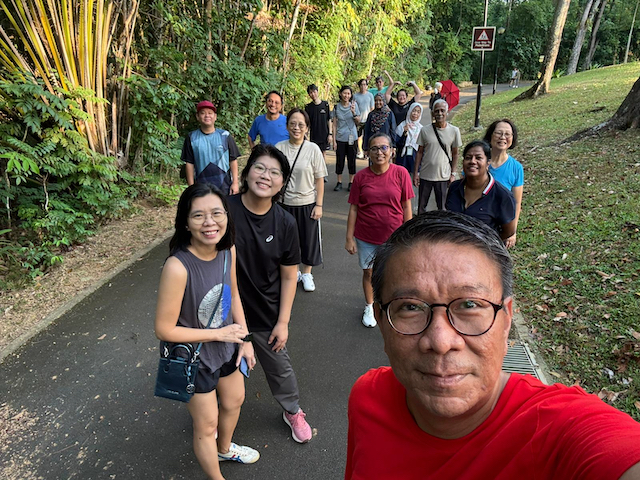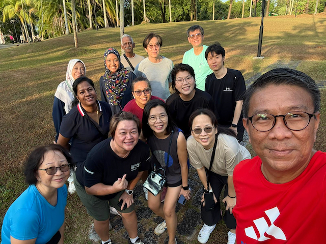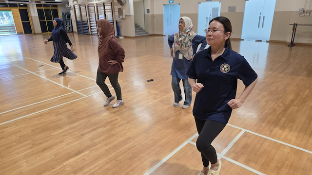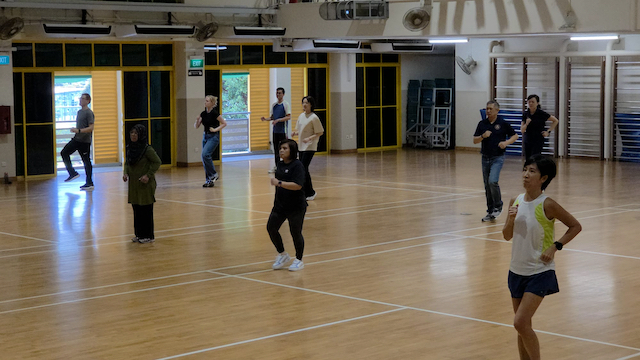 These were some of the warm-up exercises that a group of staff performed before commencing their 14th MOE Olive Run at Singapore Sports Hub, OCBC Square, on 13 July 2024. Whether or not their counterparts were dashing past them toward the finishing line, they remained focused on their personal pace, form, and enjoyment of the scenic beauty around them.